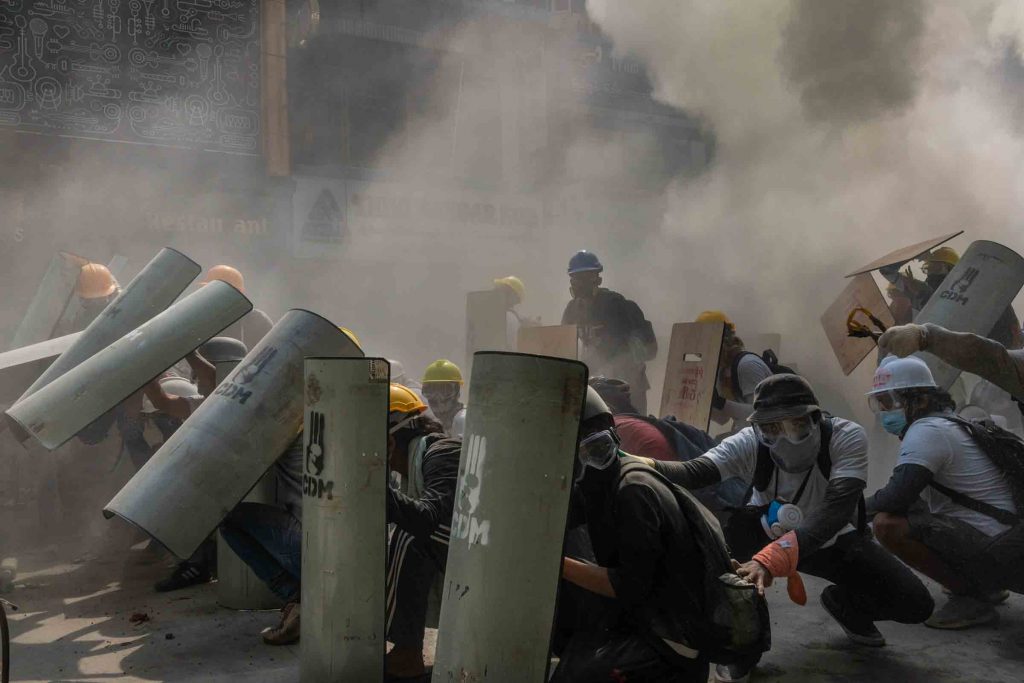 YANGON, 3 Syaa’ban 1442 H, Rabu : Bandar terbesar di Myanmar, Yangon ketika ini di bawah undang-undang tentera bertukar menjadi zon pertempuran dengan kepulan asap dihasilkan sekatan pembakar dan pasukan keselamatan melepaskan tembakan kepada penunjuk perasaan antirampasan kuasa tanpa senjata.