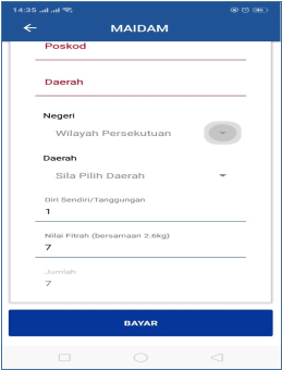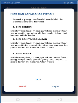 7. Sebelum menekan perkataan “bayar” untuk seterusnya, pastikan anda membaca Niat dan Lafaz Akad Fitrah, Jika bayar untuk diri sendiri baca pada ayat untuk diri sendiri, namun untuk seterusnya baca pada ayat yang perlu dibaca.