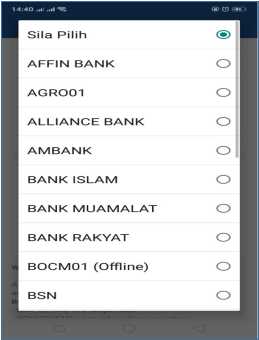 9. Pilih bank mana yang ingin anda membuat pembayaran tersebut, setelah itu boleh teruskan membayarnya. Selesai, selamat mencuba.