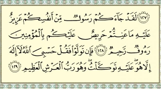 Berikut merupakan perkongsian mengenai keratan ayat 128 -129 dari Surah At-Taubah yang mempunyai khasiat sendiri apabila menghafalnya atau mengamalkan bacaan surah tersebut secara harian. Namun perlu difahami dahulu maksud ayat tersebut.