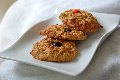 - Salut biskut-biskut dengan telur kuning dan hias dengan ceri merah atau bahan hiasan lain mengikut citarasa.