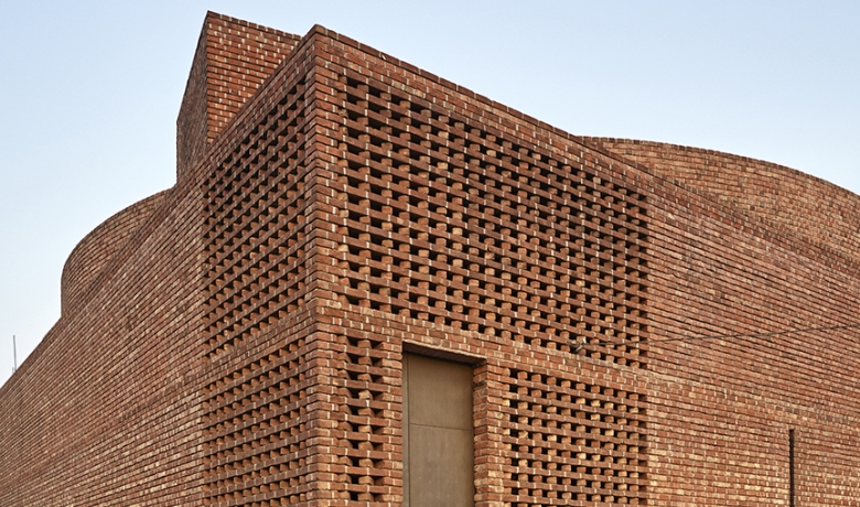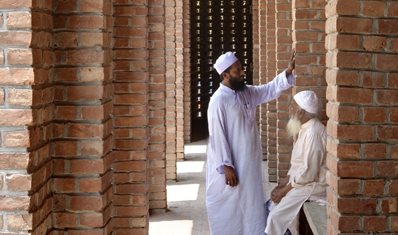 Dengan binaan bata terracotta secara tradisional, masjid tersebut dapat ‘bernafas’ melalui dinding bata berliang. Bahkan pada bulan-bulan musim panas ruang solat, itu tetap sejuk dan tidak memerlukan penghawa dingin. Selain itu, dengan susunan batu bata secara berjarak, cahaya matahari juga dapat menembus masuk.