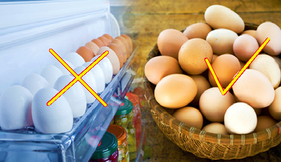 Jika anda ingin menyimpan telur di dalam peti sejuk, pastikan anda tidak menggunakan ‘tray’ telur di bahagian pintu peti sejuk. Telur memerlukan suhu yang stabil untuk menjadikan ia tahan lama dan jika anda menyimpan telur di rak pintu peti sejuk, suhu akan terjejas dan tidak seimbang malah tempias pada khasiat telur itu sendiri. Bayangkan sahaja anda kerap membuka dan menutup pintu peti sejuk. Sebaiknya, simpan telur di bahagian lain seperti di dalam laci peti sejuk tersebut supaya suhu sentiasa stabil untuk menjamin kualiti dan rasa telur apabila dimasak.