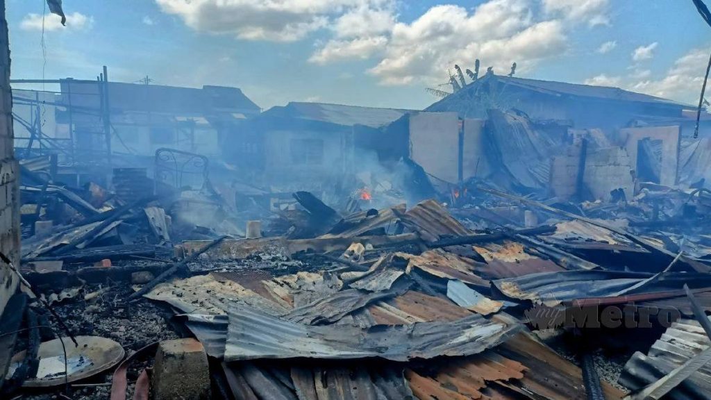 KOTA BHARU – Persiapan Aidilfitri sembilan keluarga musnah dalam kebakaran di Berek 12, di sini, hari ini.
