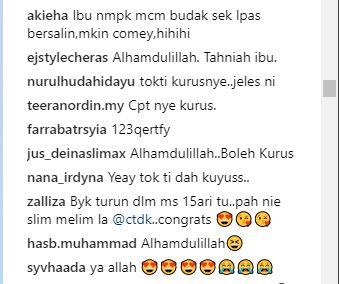 Selain itu netizen turut menyatakan rasa kagum dan memberikan sokongan untuk penyanyi kegemaran mereka ini terus menurunkan berat badan hingga mencapai berat ideal kembali.