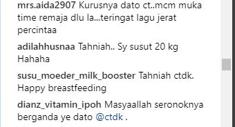 Ternyata berita gembira tersebut turut diraikan oleh pengikut Siti yang rata-rata bersetuju memberi bayi susu ibu adalah cara terbaik untuk cepat menurunkan berat badan.
