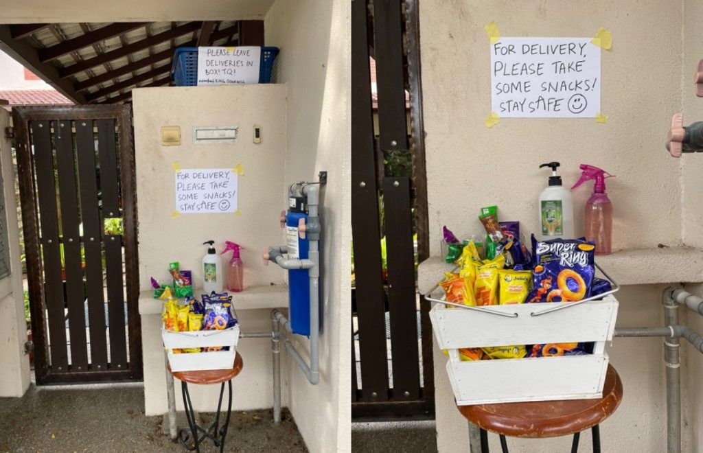Natasha Hidayah Hashim, 29, placed biscuits, candy, and hand sanitisers at her front gate as a kind gesture to delivery workers who are busier than ever dropping off goods during the movement control order (MCO).