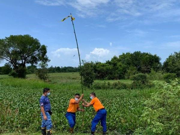Angkatan Pertahanan Awam (APM) Tumpat mengambil inisiatif memacak buluh setinggi lima meter di kawasan ditenggelami banjir sebagai amaran terdapatnya halangan di lokasi terbabit bagi mengelak bot terbalik ketika operasi menyelamat.