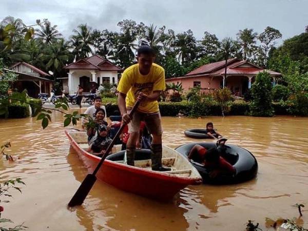 Di Tanah Merah, antara jajahan terawal dinaiki air pula seramai 386 mangsa melibatkan 104 keluarga dipindahkan ke 11 PPS.