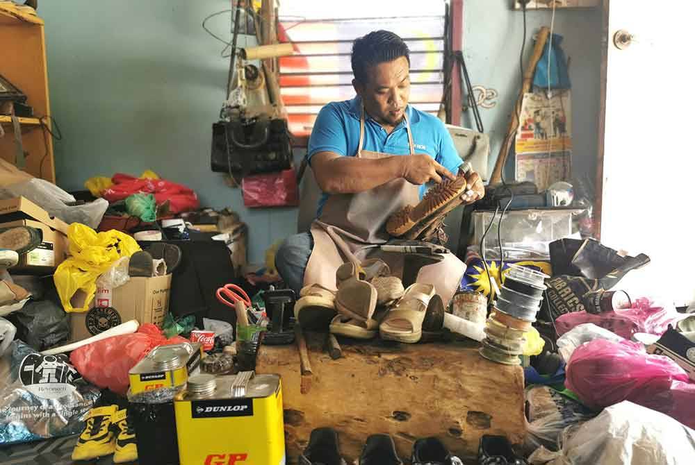 “Kasut ni macam orang sakit yang datang ke klinik dengan pelbagai masalah kesihatan. Ada yang batuk, selesema, demam. Begitu juga dengan kasut. Ada banyak jenis kasut dengan kerosakan berbeza.”