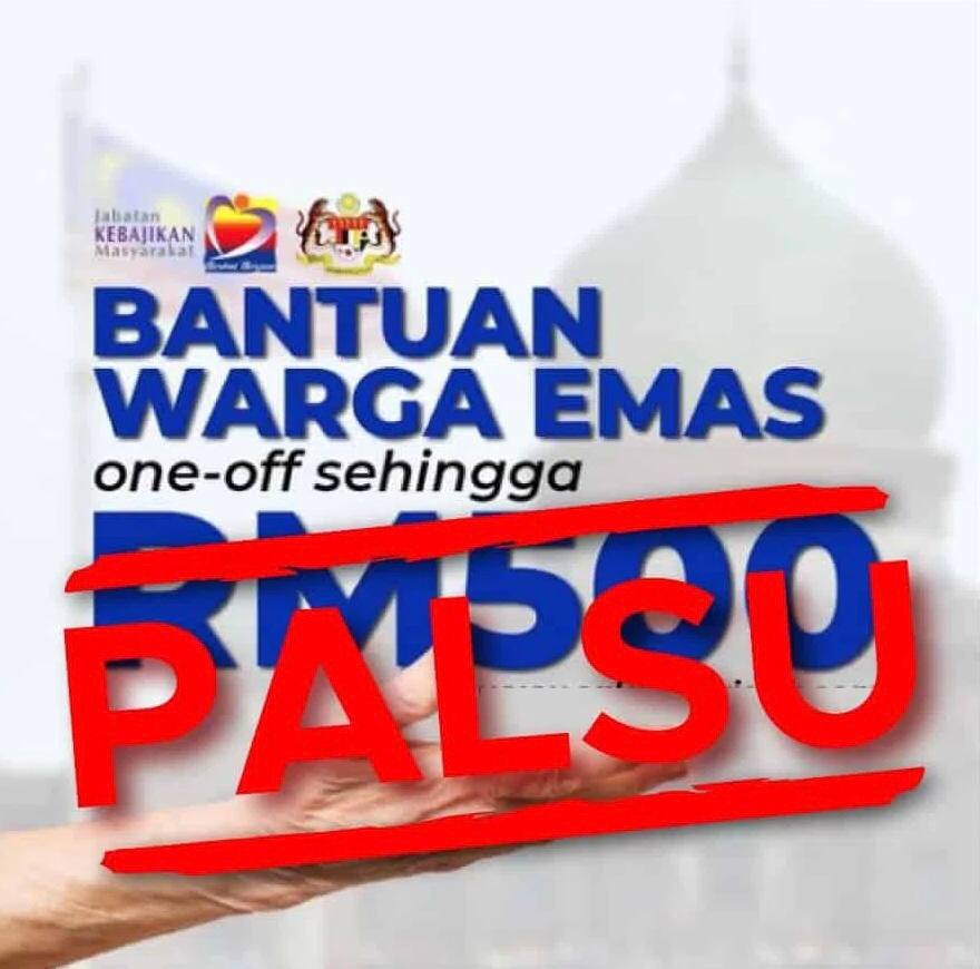 KUALA LUMPUR – Jabatan Kebajikan Masyarakat (JKM) menafikan kesasihan poster berkaitan ‘Bantuan Warga Emas one-off sehingga RM500’ yang kini sedang tular dalam media sosial.
