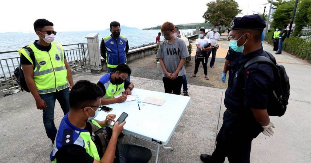 Georgetown: Seramai 28 individu termasuk empat warga asing masing-masing dikompaun RM5,000 kerana berkumpul dan bersembang ketika Perintah Kawalan Pergerakan (PKP) di Persiaran Karpal Singh di sini, semalam.