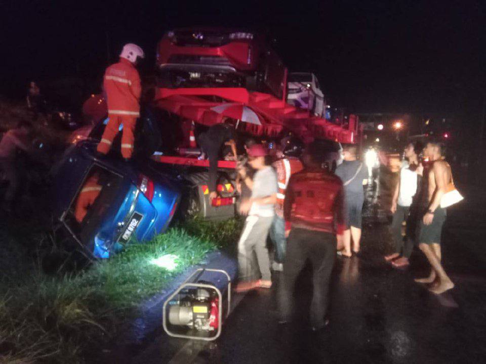 Katanya, siasatan awal mendapati, ketika kejadian, treler yang dipandu lelaki berusia 44 tahun membawa muatan kereta dari arah Kuala Krai menghala ke Kota Bharu.