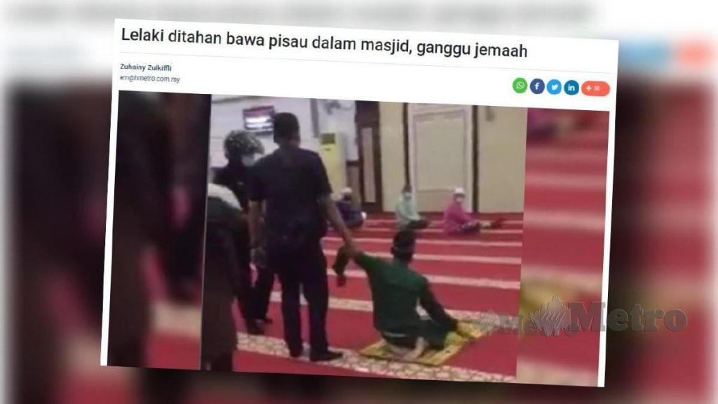 “Ia tidak benar kerana lelaki berusia 35 tahun itu ditahan berikutan mengganggu jemaah menunaikan solat selain membawa sebilah pisau.