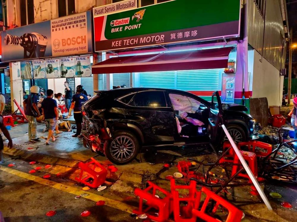 “The accident involved a Honda HRV car, which was believed to have skidded and crashed into the dining area after crashing into two cars, a Perodua Axia and a Lexus,” he added.