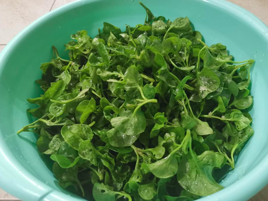 1. Bersihkan bayam Brazil sampai betul-betul bersih. Rendam dalam banyak air sebab nak tanggalkan pasir yang banyak melekat bawah-bawah daun. Bilas sampai bersih tau.