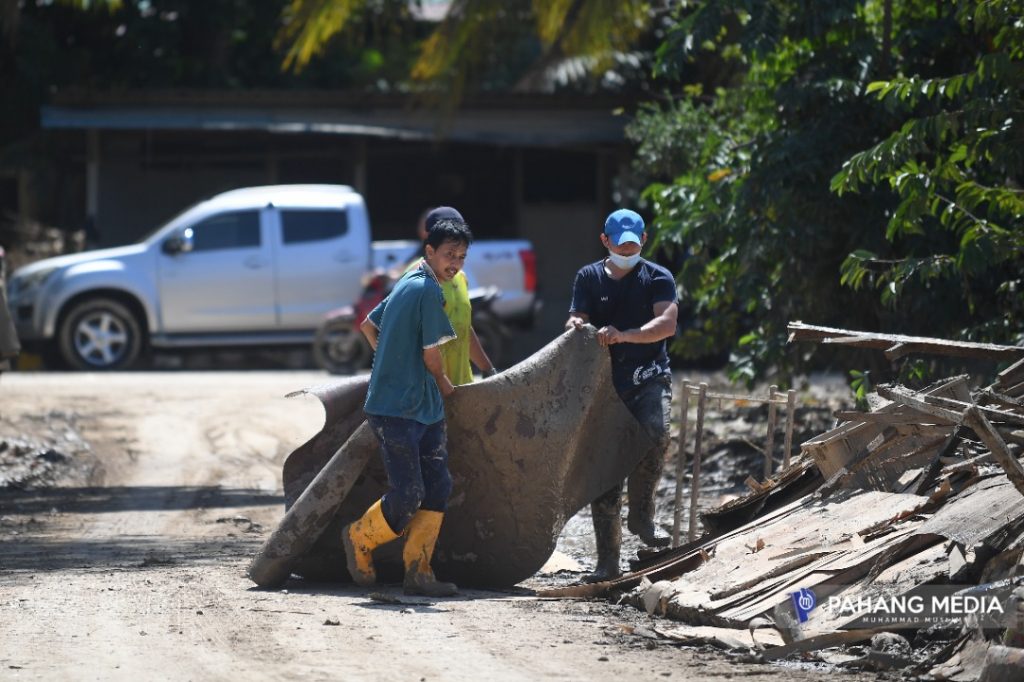KUANTAN: Seramai 200 Sukarelawan Pahang membantu mangsa banjir termasuk membersihkan dan mencuci rumah yang terjejas di Segamat, semalam. Pengerusi Jawatankuasa Hal Ehwal Agama Islam dan Pendidikan Negeri Pahang, YB. Dato’ Sri Syed Ibrahim Syed Ahmad berkata, mereka membawa amanah YAB Menteri Besar dan turut menyerahkan 100 kit makanan dan sumbangan kewangan kepada mangsa. “Semua sumbangan …
