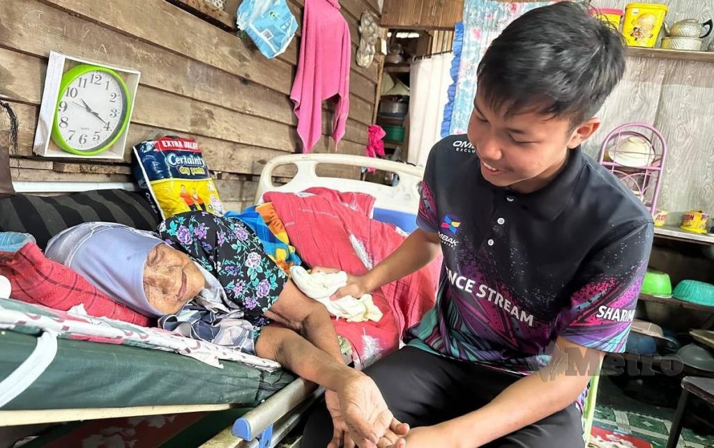 Pelajar Sekolah Menengah Agama (SMA) Maahad Muhammadi, di sini, Ahmad Sharimie Hasani, 18, yang memperoleh keputusan 7A tekun menjaga neneknya, Hamisah Long, 80, dan turut bekerja sambilan untuk menampung perbelanjaan.
