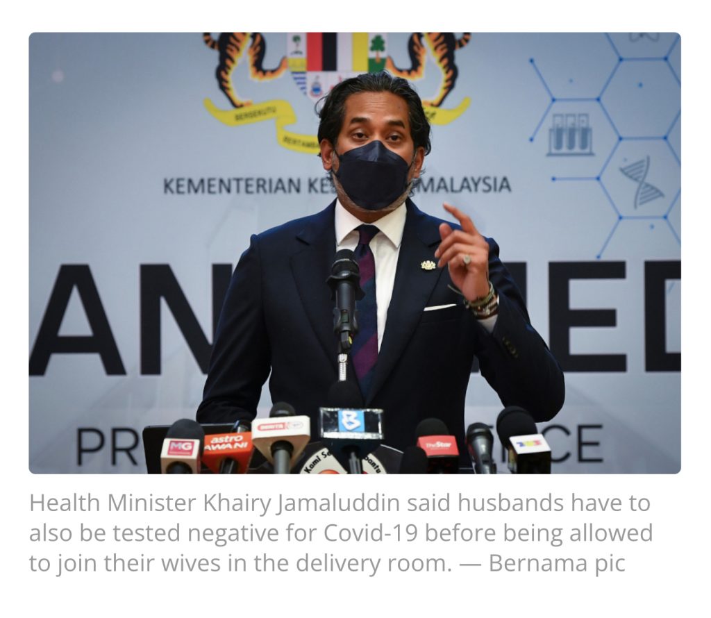 Husbands who are fully vaccinated for Covid-19 will be allowed to accompany their wives during childbirth in the delivery room, said Health Minister, Khairy Jamaluddin