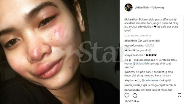 Didi memuat naik foto wajahnya selepas mengalami kemalangan di laman Instagram dan ia mendapat perhatian pengikutnya.