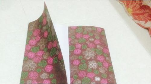 Lipatkan kertas pembalut hadiah kepada empat bahagian seperti dalam gambar.