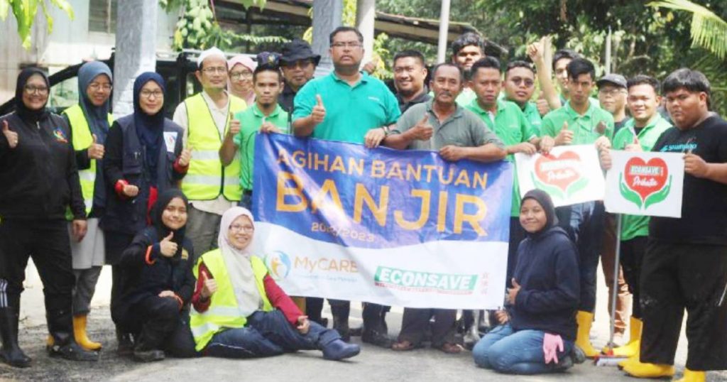 PASIR PUTEH: Pasar raya Econsave Cash and Carry (Econsave) menyampaikan bantuan tiga serangkai berbentuk sumbangan makanan dan barangan kebersihan, selain mengadakan gotong-royong dalam menyantuni mangsa yang terjejas banjir di Kelantan, hari ini.