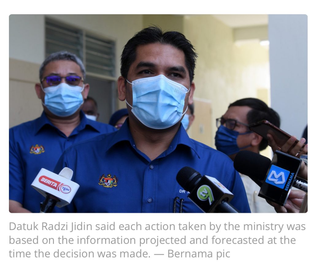 Radzi said each action taken by the ministry was based on the information projected and forecasted at the time the decision was made, adding that it was just a forecast and prediction.