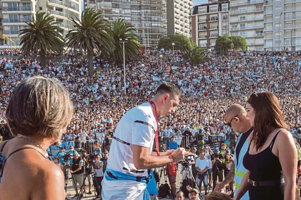 Kemudian ketika perarakan kemenangan Argentina di Buenos Aires, dia dilihat memegang anak patung dengan muka bintang Perancis, Kylian Mbappe.