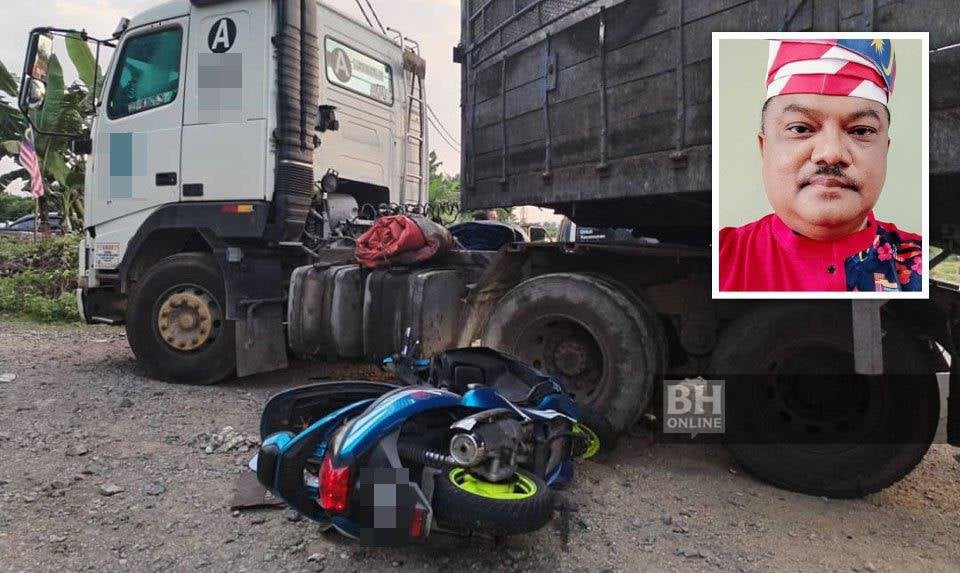 “Pemandu treler telah memberikan isyarat untuk membelok ke kiri jalan. Tiba-tiba datang sebuah motosikal dari arah belakang yang ditunggang oleh mangsa telah hilang kawalan lalu terjatuh dan terseret seterusnya melanggar tayar tengah sebelah kiri lori treler.