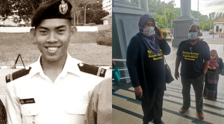 KUALA LUMPUR: Ibu bapa Pegawai Kadet Laut Universiti Pertahanan Nasional Malaysia (UPNM), Zulfarhan Osman Zulkarnain yang dibunuh empat tahun lalu, tiba di Kompleks Mahkamah di sini, pagi ini.