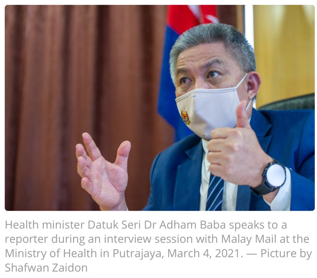 Health Minister Datuk Seri Dr Adham Baba, via an infographic uploaded on Twitter today, said the figure was provided by the Covid-19 Vaccine Supply Access Guarantee Special Committee.