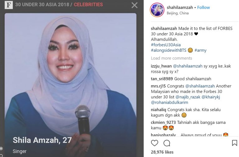 Semalam, menerusi Instagram miliknya, Shila mengkhabarkan satu lagi berita gembira apabila dia tersenarai dalam Forbes 30 Under 30 Asia 2018 dibawah kategori Selebriti.