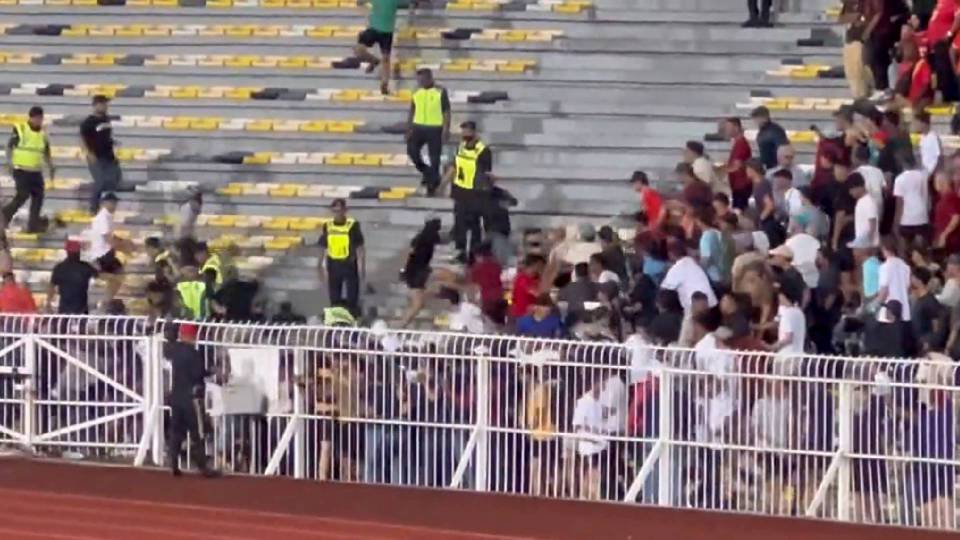 Kehadiran bebeberapa orang anggota polis yang menjaga kawasan terbabit dilihat gagal mengelakkan berlaku pertembungan fizikal antara penyokong kedua-dua pasukan terbabit.