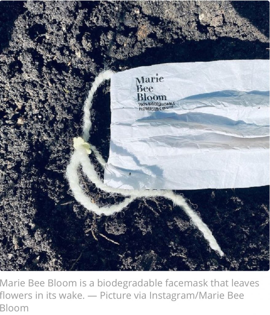 “After weeks of tripping over all the blue disposable masks on the street, I woke up one morning to the idea of a biodegradable face mask with flower seeds in it. Earth happy, bees happy, nature happy, people happy. I sell the mask under the name Marie Bee Bloom. Bloom the world!” explains the creator of these eco-friendly masks on her website.