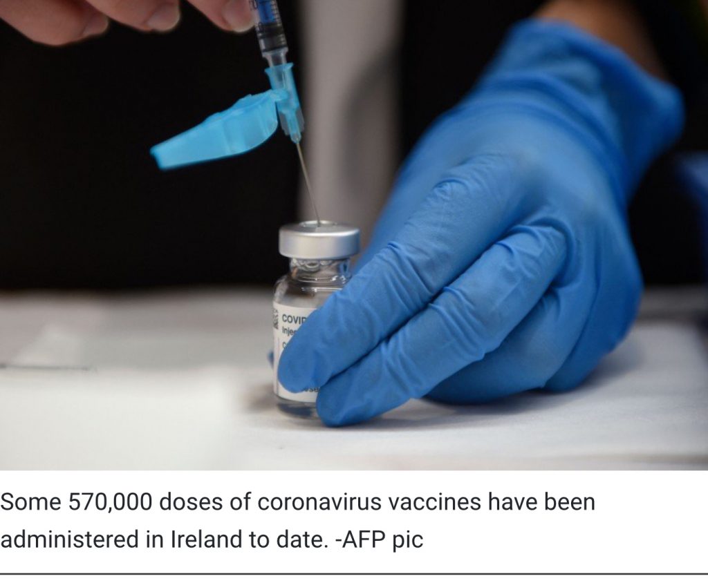 Some 570,000 doses of coronavirus vaccines have been administered in Ireland to date, according to government data last updated Wednesday.