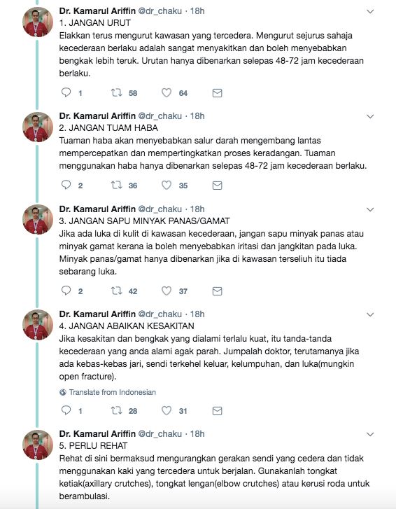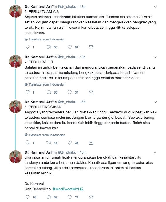 Jadi, korang yang terseliuh tu jadikan panduan ini sebagai rawatan pertama anda okay?