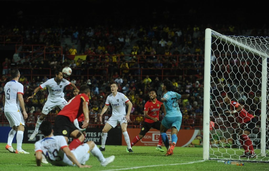 Pemain import itu menanduk bola tendangan bola mati yang diambil Leandro, untuk JDT mendahului 1-0.