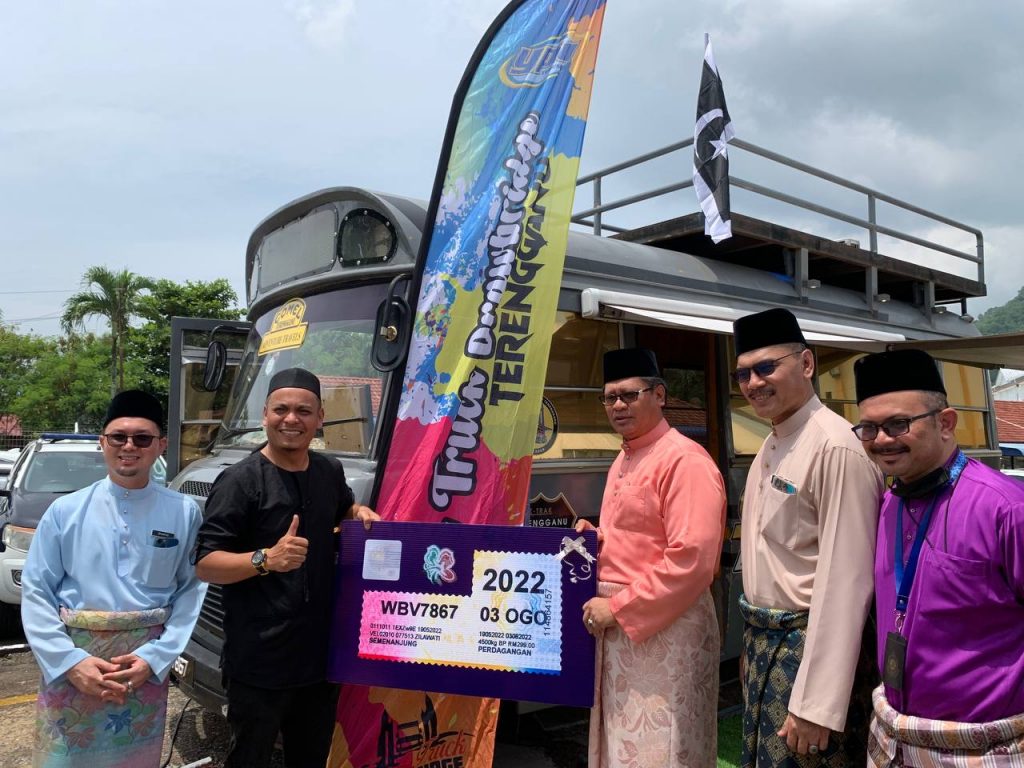 KUALA TERENGGANU – Jabatan Pengangkutan Jalan (JPJ) hari ini menyerahkan lesen kenderaan motor (LKM) kepada seorang peniaga kendera saji yang mewakafkan bas sekolah mininya mnejadi surau bergerak.