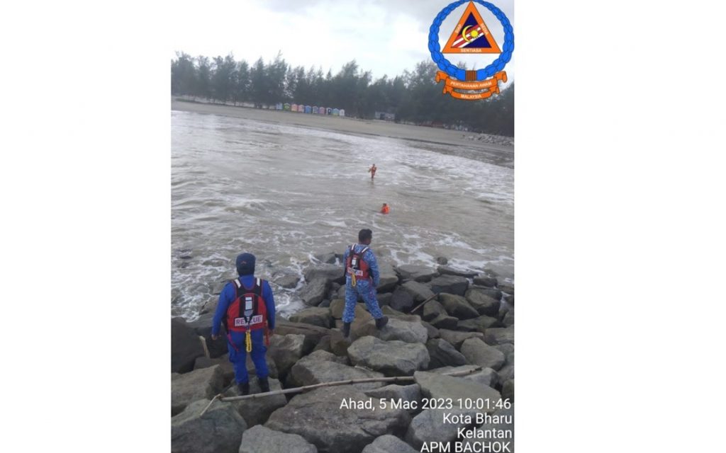 Ketua Polis Daerah Bachok Superintendan Mohamad Ismail Jamaluddin berkata dalam kejadian kira-kira 8 pagi, mangsa Ahmad Fadhlullah Mohamad, 12, belum ditemukan selepas cuba menyelamatkan Muhammad Nabil Irfan Ismail Mokhtar, 11, yang tergelincir dari benteng batu di pantai terbabit.