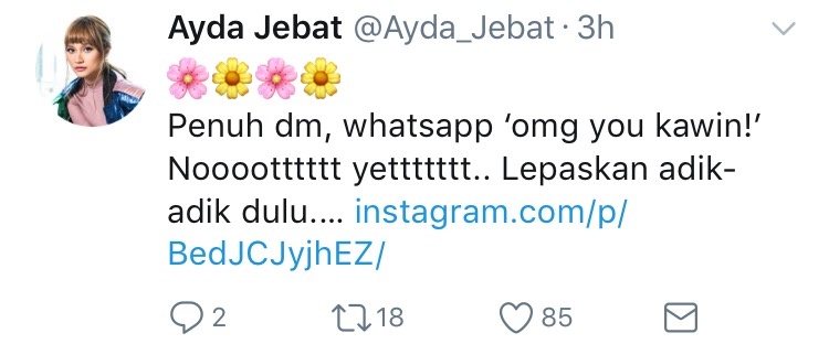 Lucu pula, gara-gara muat naik gambar atas pelamin bersama keluarga, Ayda Jebat menerima pelbagai respon dan mesej bertanyakan tentang perkahwinan tersebut.
