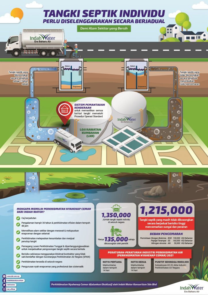 “Malangnya, ramai pengguna yang tidak sedar akan kepentingan mengosongkan tangki septik kerana mungkin merasakan ia bukan tanggungjawab mereka,” jelasnya sambil memberitahu, kerja-kerja nyahenap cemar dari tangki septik ini sebaik-baiknya perlu dilakukan apabila tangki hampir penuh atau sekurang-kurangnya sekali dalam tempoh 2 tahun.