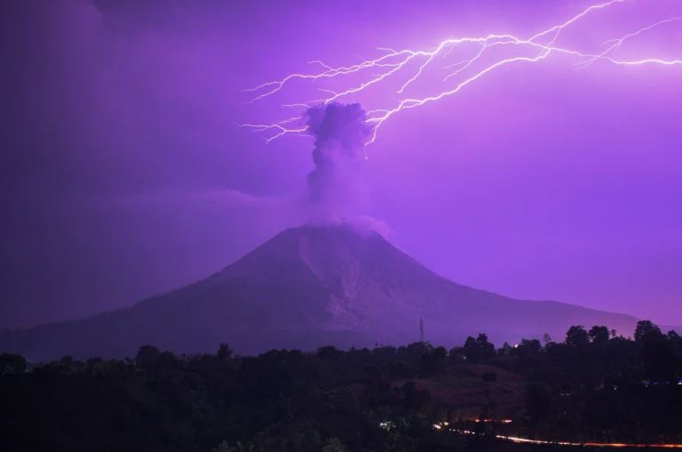 Langit Bertukar Ungu Di Gunung Sinabung Akibat Kilat