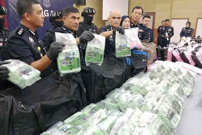 “Pemeriksaan ke atas kenderaan tersebut menemukan 63.7 kilogram syabu dan 20.1 kilogram pil ekstasi yang disembunyikan dalam ruang khas di bonet belakang yang telah diubah suai.