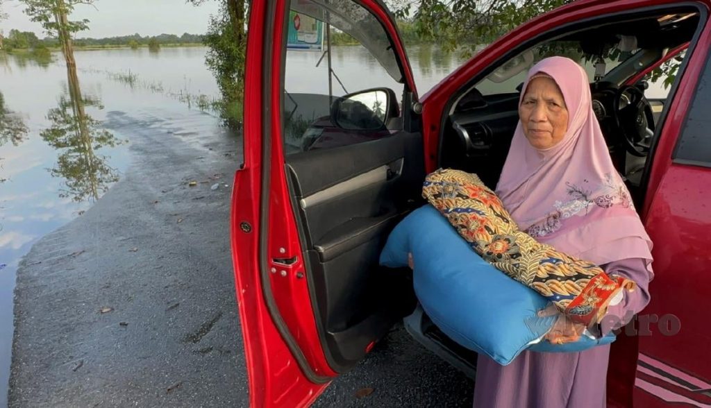 Mohd Hamzuri Mokhtar, 40, berkata dia terpaksa meminta bantuan rakannya untuk menaiki pacuan empat roda memandangkan laluan untuk pulang ke rumahnya di Kampung Kacang Sebidang di sini dinaiki air.