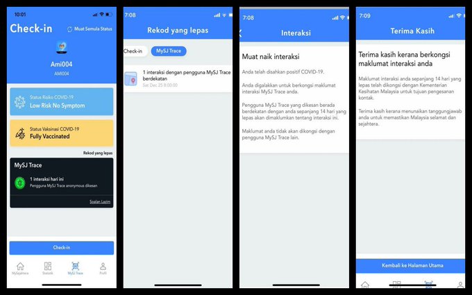 “Jika anda disahkan positif, anda boleh hantar data interaksi kepada Kementerian Kesihatan (KKM) untuk proses pengesanan kontak dibuat. Semua data interaksi adalah tidak didedahkan,” katanya.