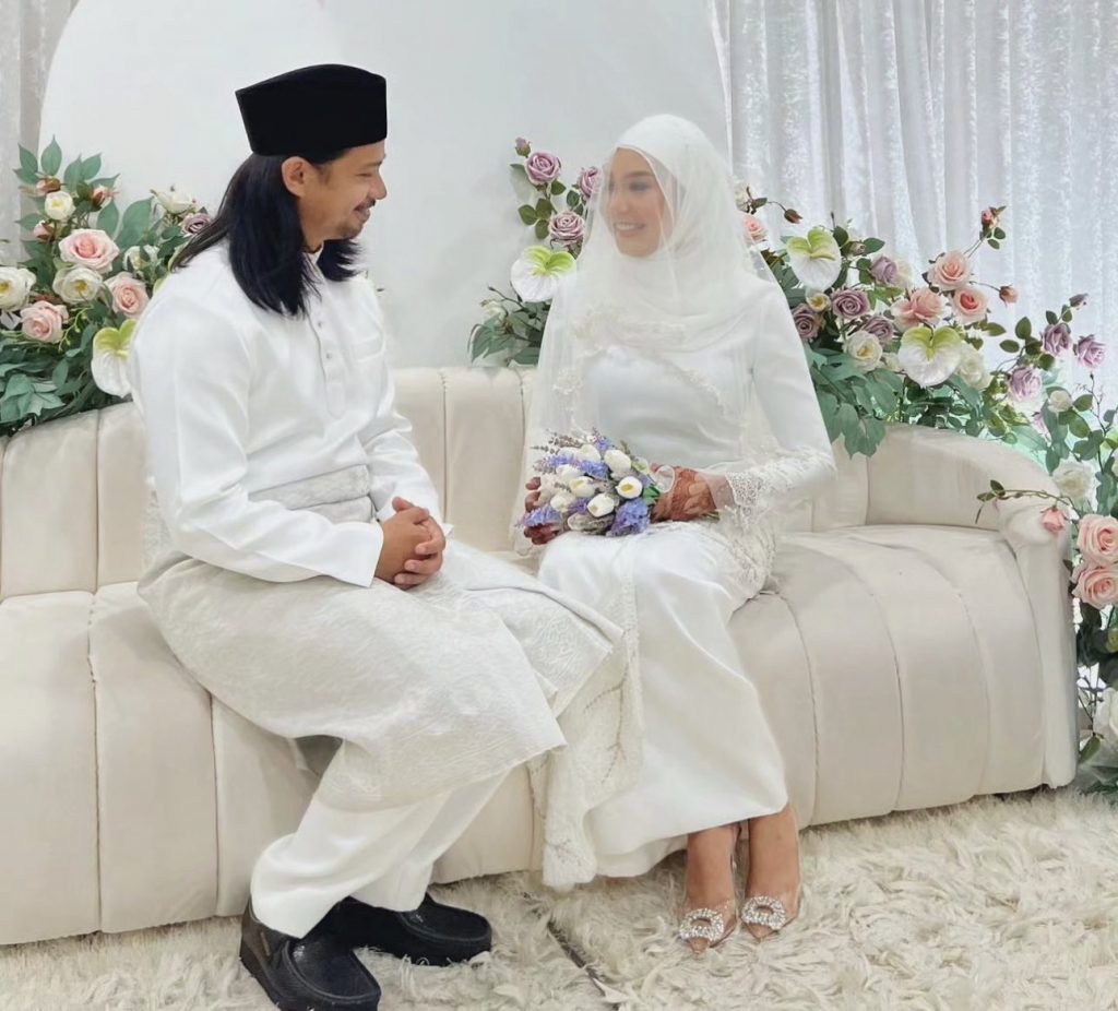 Noh memuat naik fotonya dan Athira, 30, sedang duduk atas pelamin, lengkap dengan busana pengantin berona putih.