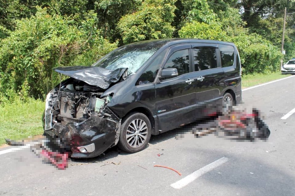 Dalam kejadian kira-kira jam 12.30 tengah hari semalam, tiga beradik maut selepas motosikal dinaiki mereka terbabit dalam kemalangan dengan sebuah kenderaan pelbagai guna (MPV) di Kilometer 7, Jalan Benta-Lamir dekat Kampung Langgar di sini.