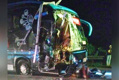 “Sejurus tiba di lokasi, lori tersebut telah bertembung dengan bas. Pelanggaran itu mengakibatkan bas terbabit bergerak ke sebelah kiri jalan lalu melanggar penghadang keselamatan.