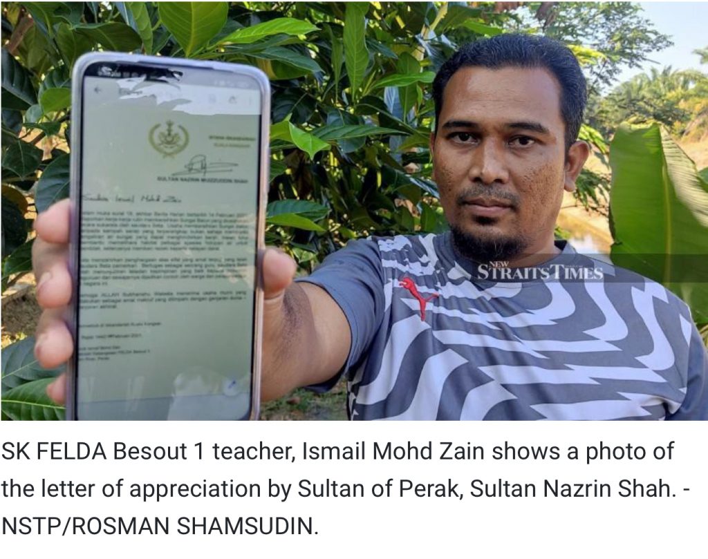 “I received a call from the palace today informing me that a letter of appreciation from the Sultan of Perak was mailed to the school yesterday,” said the father of two.