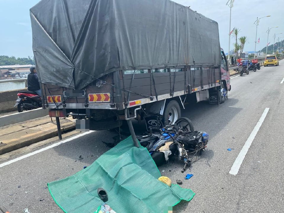 KUALA TERENGGANU: Seorang pesara awam maut apabila motosikal ditunggangnya merempuh belakang sebuah lori sedang berhenti di lorong kiri akibat tayar pecah, di Jambatan Sultan Mahmud di sini, hari ini.